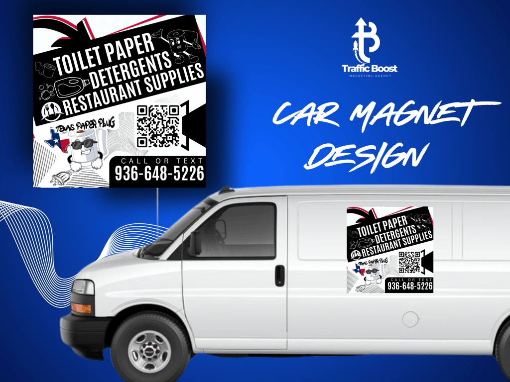 Car magnets are a powerful tool for effective mobile advertising, helping you promote your business on the go. These customizable magnets with QR codes make it easy for potential customers to access your information quickly and conveniently. Take a look at some of the car magnets we have created, designed to be eye-catching and informative. Invest in car magnets to boost your visibility and ensure your promotions are always on the move.